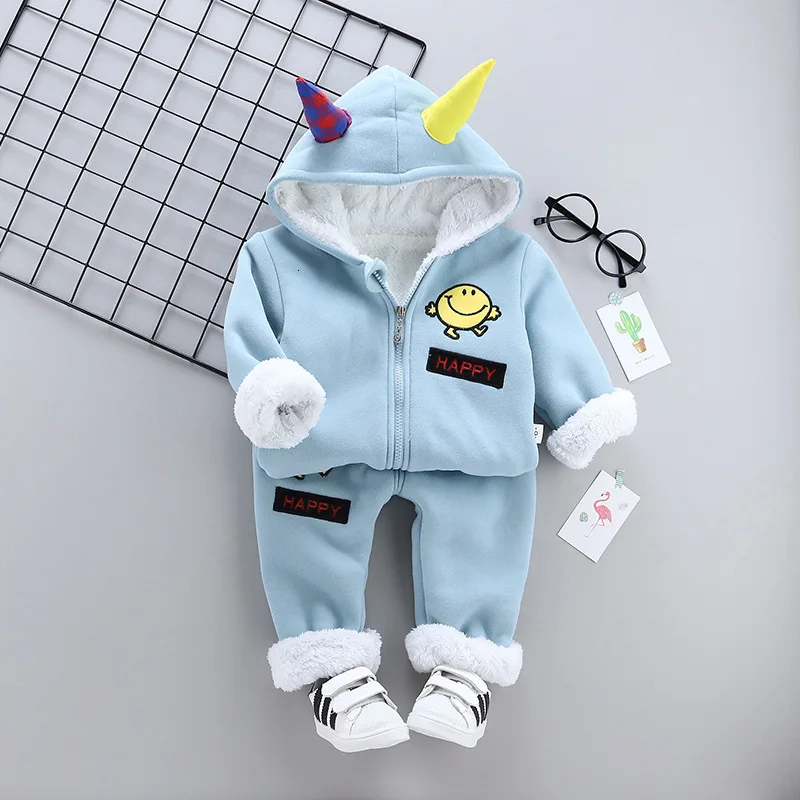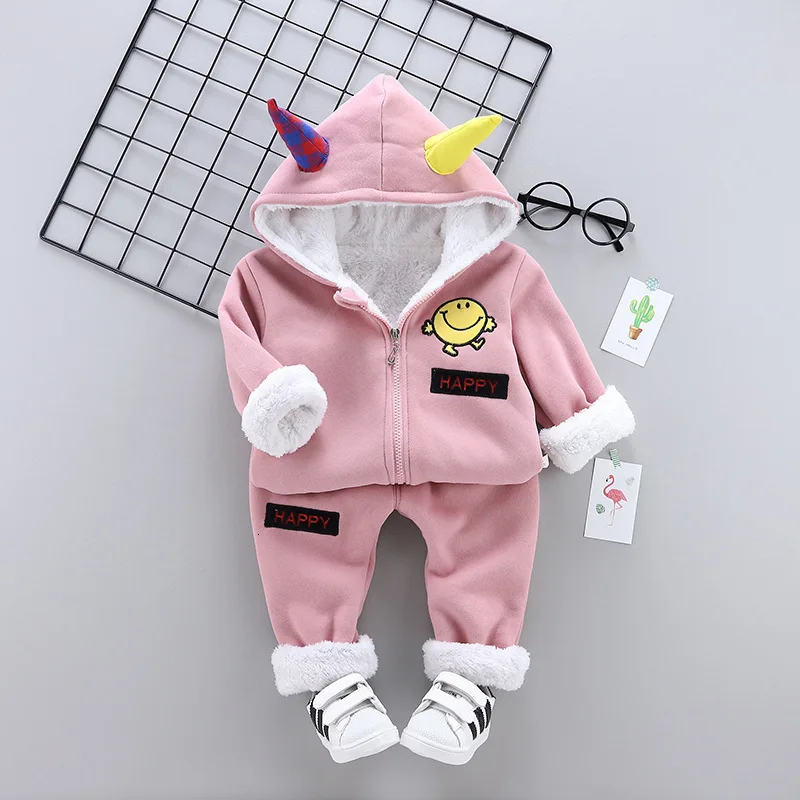 New Baby Boy Girl Cartoon Hooded Pants 2Pcs/sets Infant Kid Autumn Winter Children Plus Velvet Cotton Clothes Toddler Tracksuits look the best product that related to